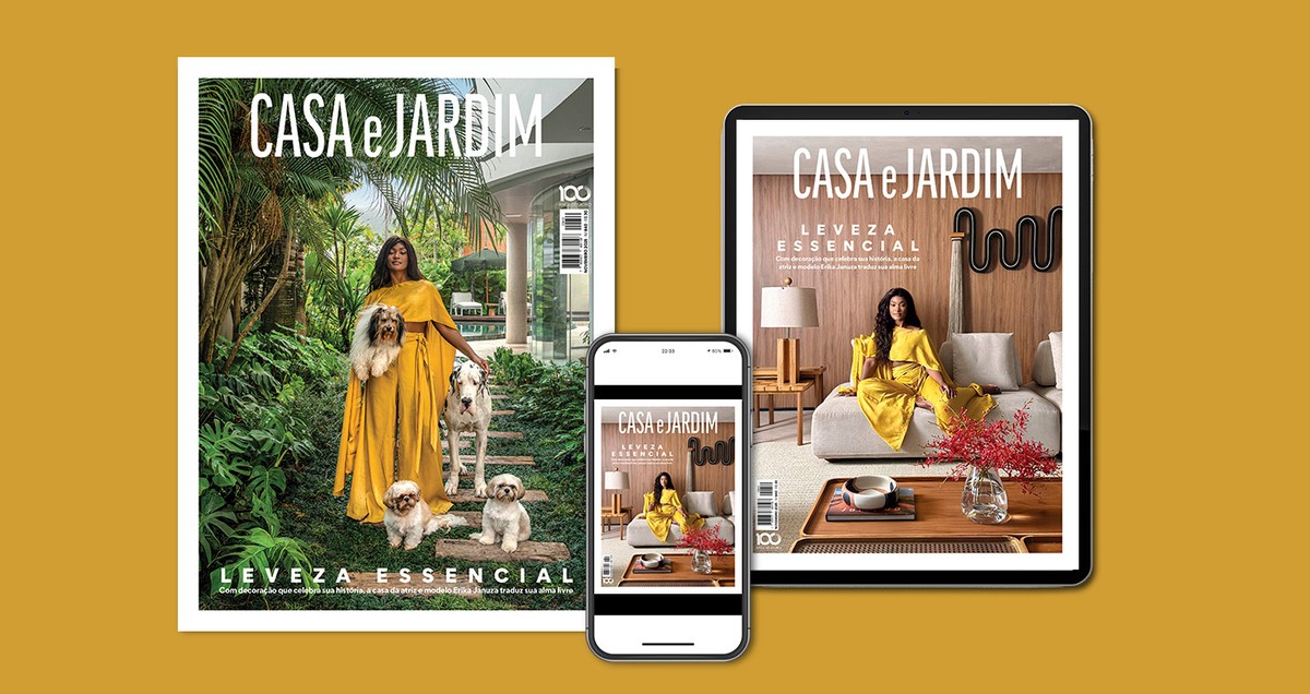A edição de novembro da revista Casa e Jardim apresenta um mergulho no universo particular da atriz e modelo Erika Januza, com sua casa no Rio de Janeiro estampando a capa. Localizado no Recreio dos Bandeirantes, o refúgio de 527,41 m² reflete a essência da artista, unindo suas raízes mineiras ao cenário litorâneo que escolheu para viver, sem abrir mão do contato com a natureza.