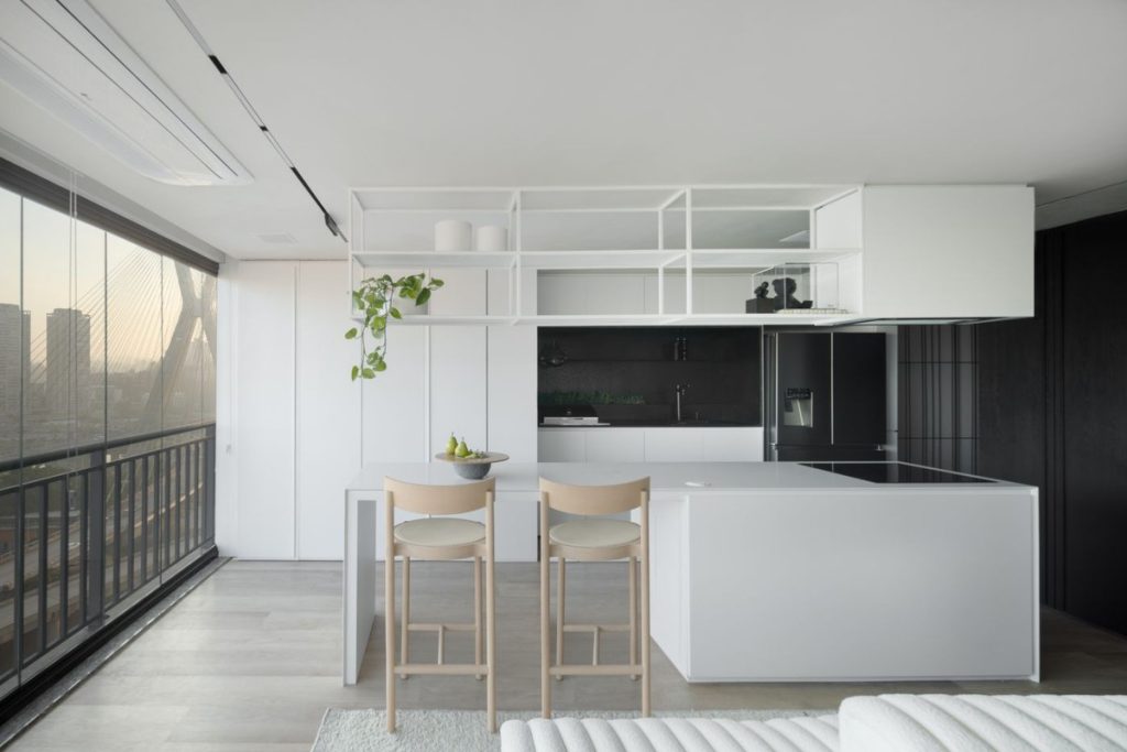 Na cozinha, o branco é amplamente utilizado para ampliar visualmente o ambiente e refletir a luz, características especialmente importantes em imóveis menores. A cor transmite uma sensação de limpeza e leveza, tornando o espaço mais agradável e funcional. Armários brancos, bancadas claras e revestimentos clean criam um ambiente moderno e convidativo. A combinação com detalhes em madeira ou metal adiciona um toque de personalidade e sofisticação à cozinha.