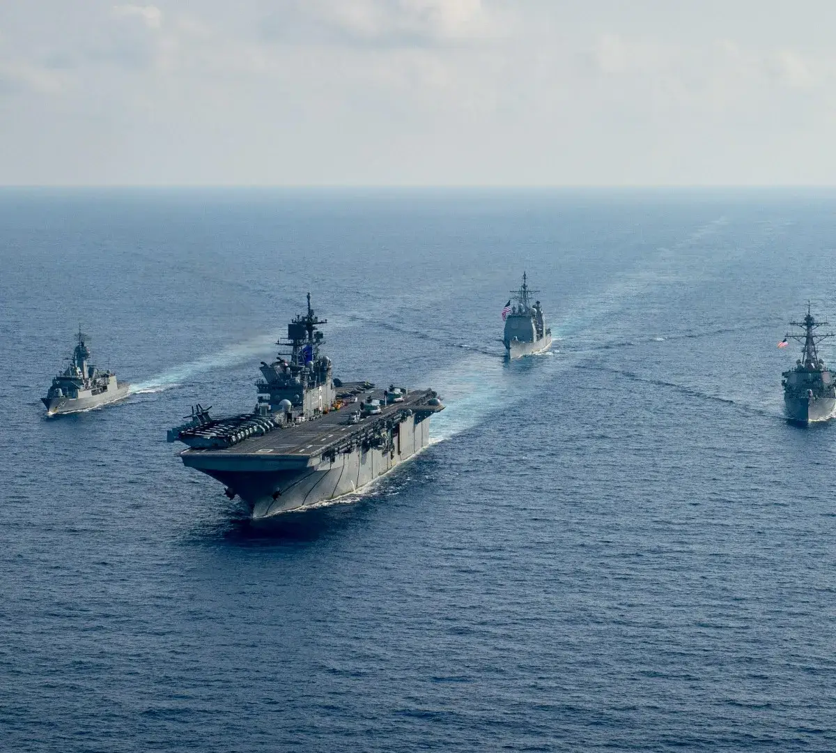 As fotografias, divulgadas na terça-feira (14), mostram o USS Gerald Ford navegando em formação com outros navios do grupo de ataque, incluindo os destróieres USS Winston Churchill, USS Mahan e USS Bainbridge. As imagens também exibem aeronaves, como jatos de ataque e um bombardeiro B-52 Stratofortress, sobrevoando a formação naval. As fotos foram tiradas em 13 de novembro de 2025.